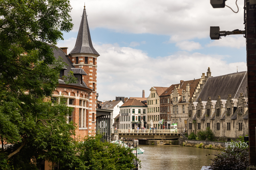 Ξεκίνησε λοιπόν με τα πόδια! Στα δεξιά πριν τη γέφυρα βλέπεις το ναό Saint Michael’s Church κι αμέσως μετά περνάς την ομώνυμη γέφυρα κι έχεις 360 μοίρες οπτικό πεδίο σε μαγικό σκηνικό. Βλέπεις και τους 3 πύργους της πόλης στη σειρά, το ποτάμι Λυς και τις αποβάθρες Graslei και Korenlei κατά μήκος του καναλιού με πολλά εστιατόρια και μικρά καταστήματα, κόσμο να βολτάρει ή να κάθεται και να χαζεύει την υπέροχη θέα στα ιστορικά κτίρια. Και να φωτογραφίζει κάθε γωνιά εννοείται από τα εντυπωσιακά σπίτια στις όχθες! Από κει ξεκινούν και οι υδάτινες διαδρομές με διάφορους τύπους σκαφών για να δεις τα highlights της Γάνδης εν πλω και με ξενάγηση.